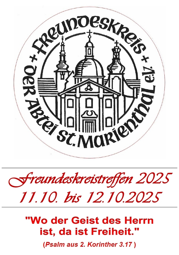 Freundeskreistreffen 2025 bei uns im Kloster St. Marienthal ~ am Samstag, den 11.10. und am Sonntag, den 12.10.2025 ~ mit dem Thema: "Wo der Geist des Herrn ist, da ist Freiheit."