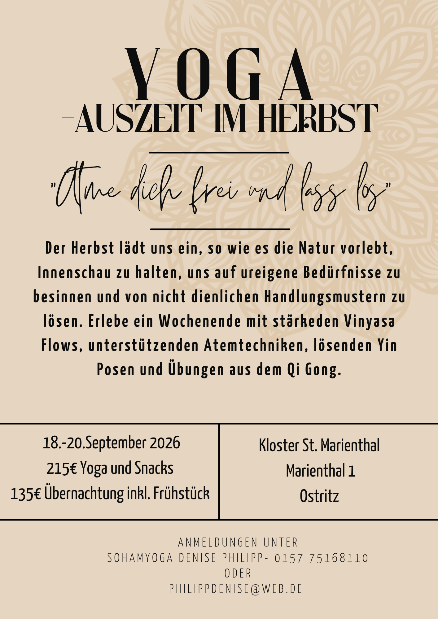 weitere Informationen dazu unter: >>> "Yoga-Wochenende" <<<