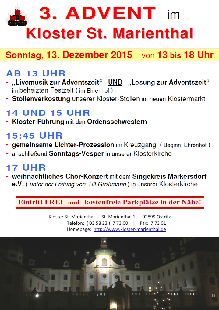 die WEIHNACHTSZEIT bei UNS im Kloster St. Marienthal - wir laden Sie herzlich ein