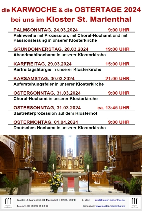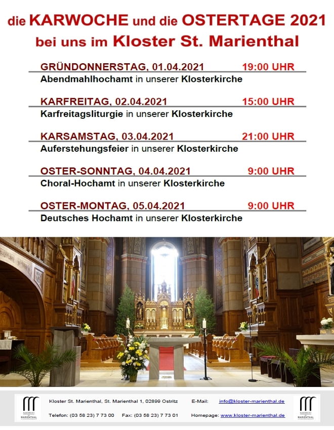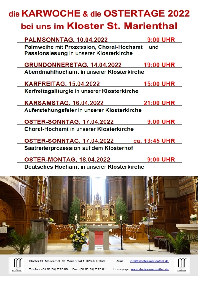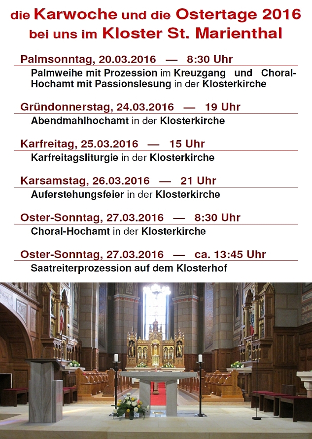 Während der Kartage und der Osterzeit ist unser Kloster auch geöffnet. Unsere Türen stehen Ihnen offen ~ Jeder ist uns herzlich willkommen und soll sich bei
