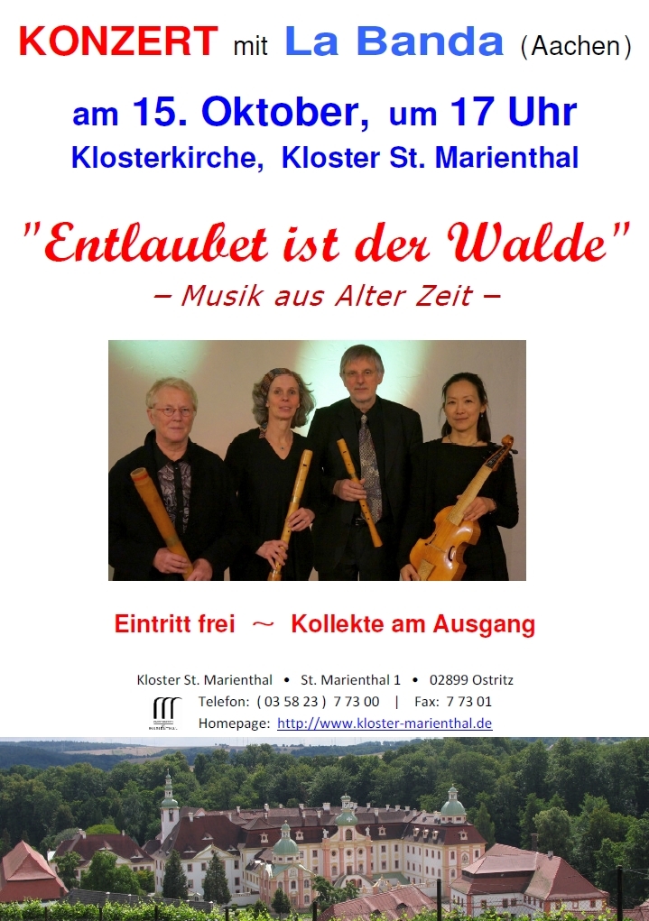Bis ca. 18:15 Uhr erklingen in unserer Klosterkirche berühmte Sonaten von Telemann, Corelli, Händel, Barrière uva.