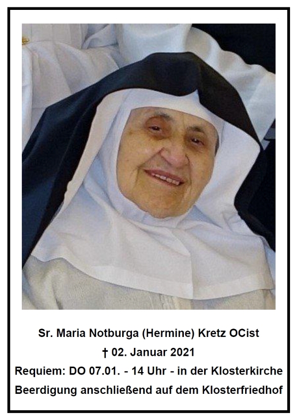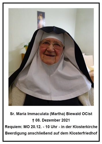 Gesundheit und mit vielen guten Wünschen an Sie alle. ~ Ihre Zisterzienserinnen vom Kloster St. Marienthal