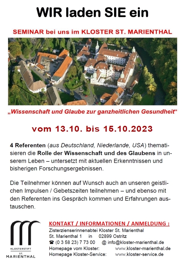 Wir bedanken uns bei Ihnen für Ihr großes Interesse an unserer Homepage und für Ihren virtuellen Besuch, den Sie auch sehr gern vor Ort als Gast im Kloster St. Marienthal fortsetzen