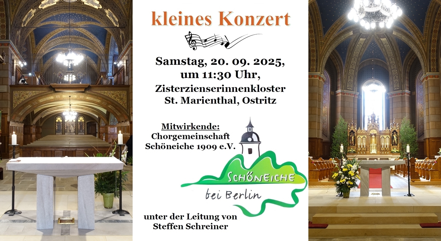Kleines Konzert mit der Chorgemeinschaft Schöneiche 1909 e.V. am Sonnabend, 20.09.2025, um 11:30 Uhr, in der Klosterkirche vom Kloster St. Marienthal