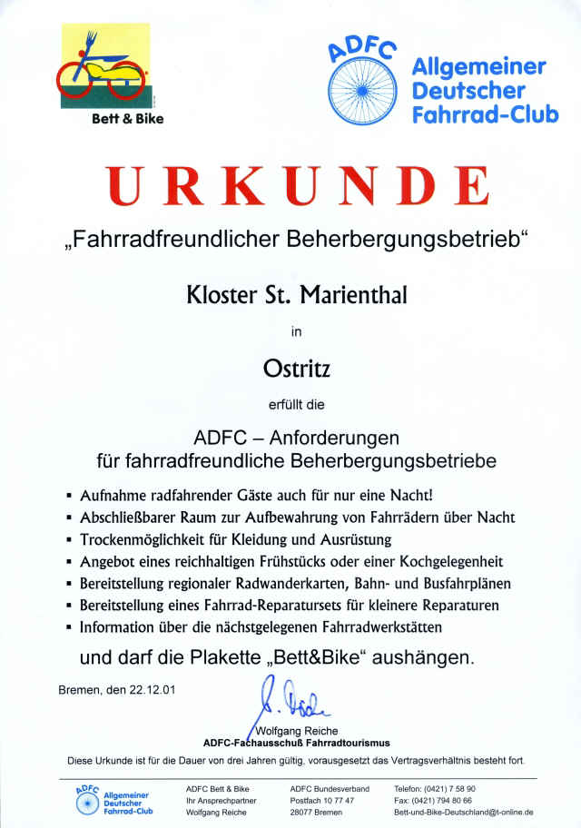Bei der Auswahl der radlerfreundlichen Übernachtungsbetrieben ist Qualität Trumpf: Nur wer die ADFC-Qualitätskriterien erfüllt, erhält vom ADFC eine Urkunde und darf sich mit dem