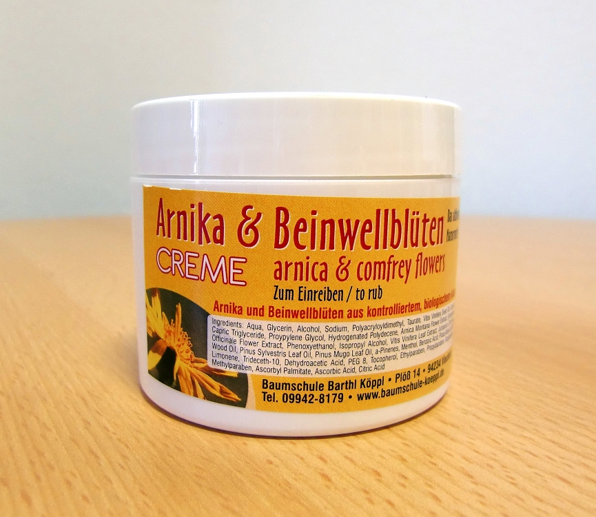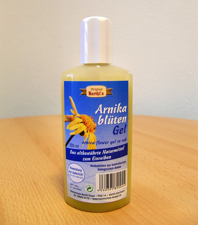 LINKS: Arnikablüten-Gel 200 ml 14,50 Euro Das altbewährte Naturmittel zum Einreiben Inhaltsstoffen: Aqua, Ethanol, Glycerin, Arnica Montana, Flower