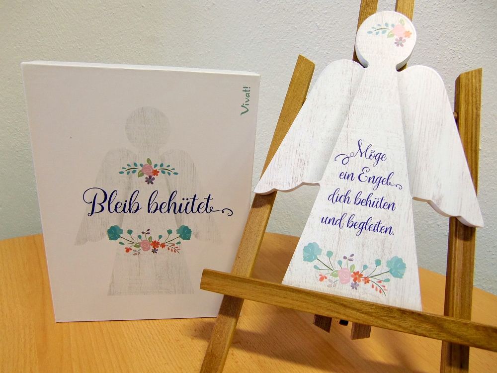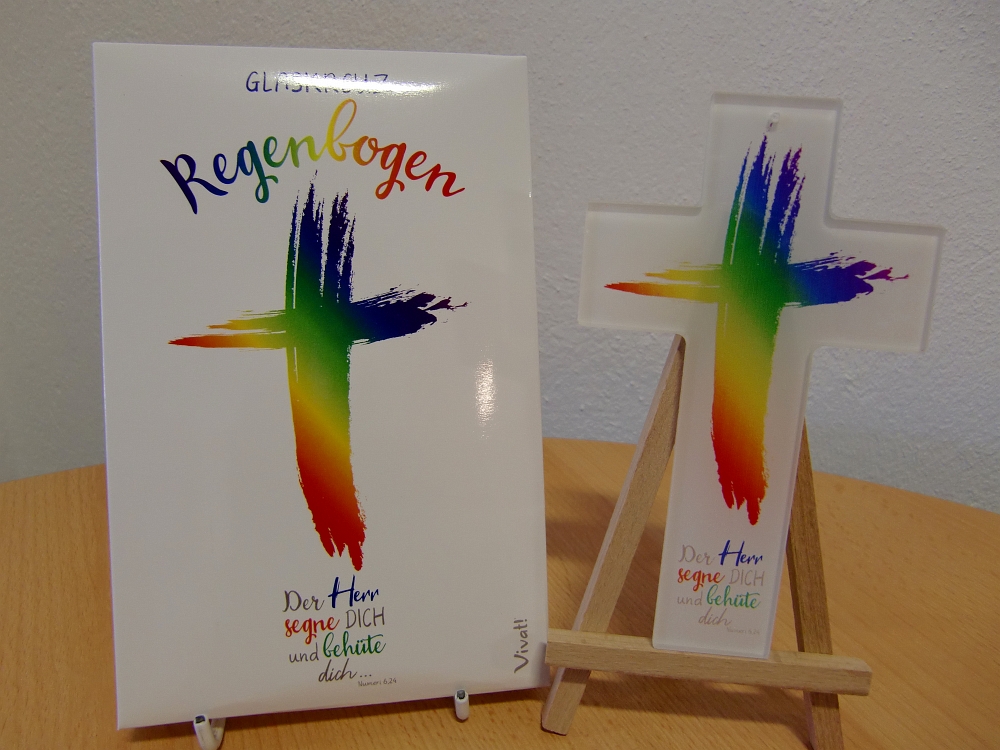 LINKS: Glaskreuz "Regenbogen" St. Benno Verlag 9 x 15 cm 29,95 Euro RECHTS: Holzengel "Bleib behütet"