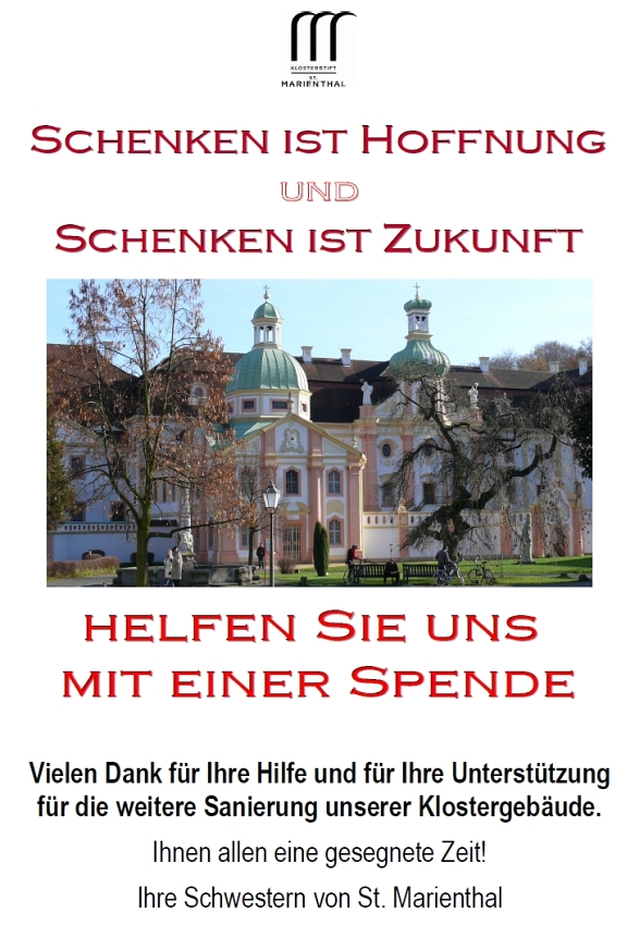 ein herzliches Vergelt's Gott und eine gesegnete Zeit Ihnen allen Ihre Schwestern von St. Marienthal