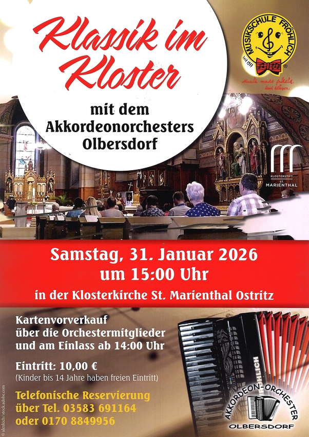 KLASSIK-Konzert in unserer Klosterkirche - Samstag, 31.01.2026, 15 Uhr (Einlass: 14 Uhr)